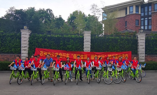為倡導(dǎo)“綠色交通,低碳生活”的出行理念,引導(dǎo)市民在出行中盡量選用步行、自行車(chē)等綠色交通方式。9月20日,正值“無(wú)車(chē)日”活動(dòng)到來(lái)之際,蘇州市市區(qū)道路停車(chē)管理所和公共自行車(chē)運(yùn)營(yíng)公司在水坊路公共自行車(chē)站點(diǎn),開(kāi)展“低碳生活、綠色出行”環(huán)金雞湖騎行公益宣傳活動(dòng)。